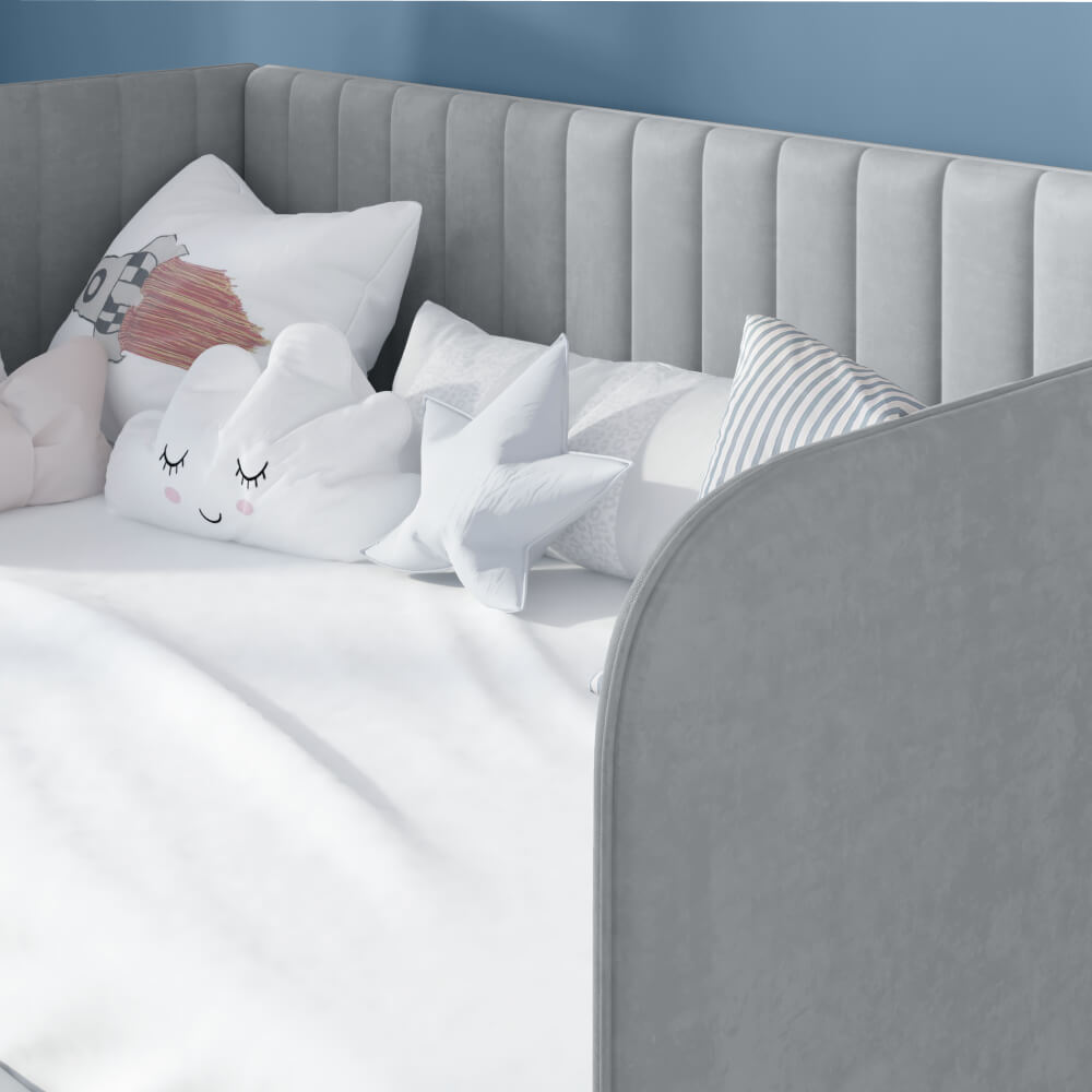 Детская кровать ELLA 2 с вертикальной строчкой и выдвижным ящиком сочетает в себе функциональность, стиль, удобство и комфорт, делая ее отличным выбором для детской комнаты.